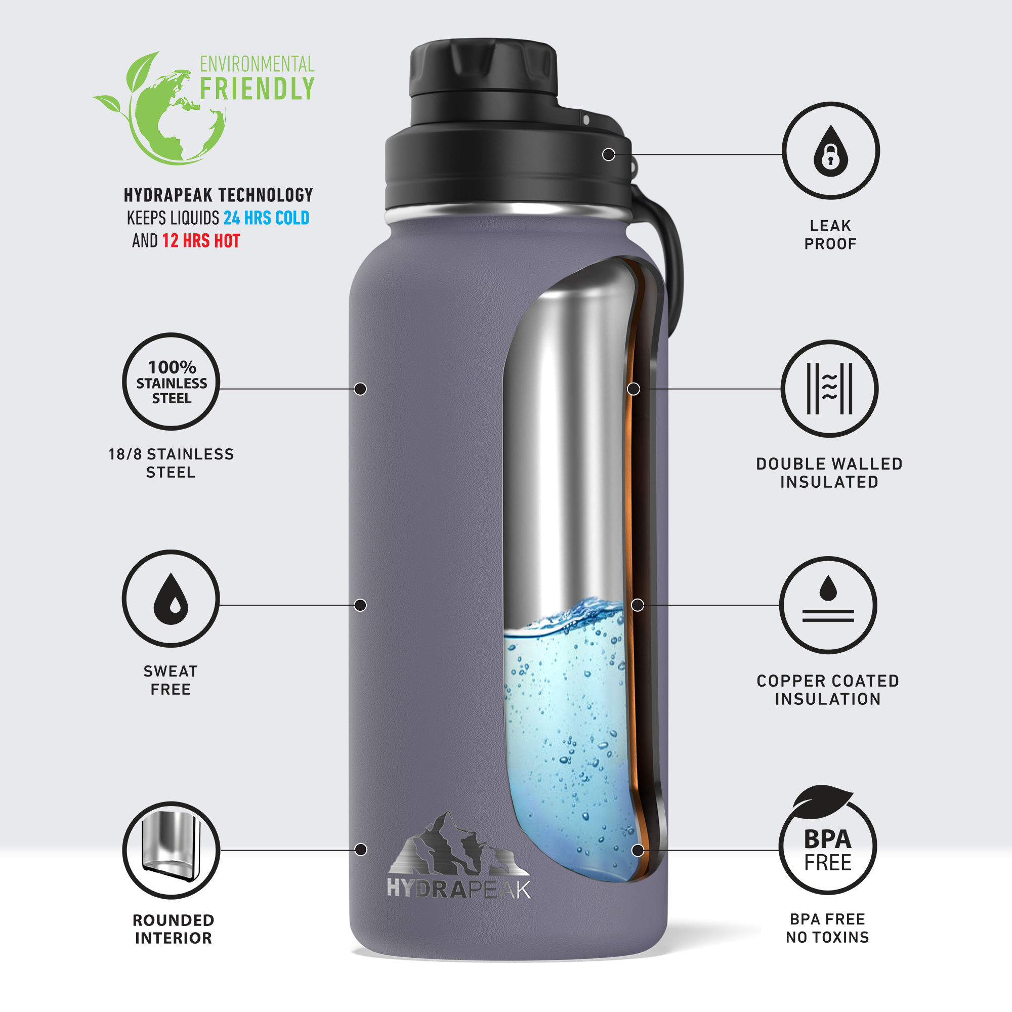 This stainless steel, triple-insulated, lightweight bottle is there for the ride. Stay hydrated on road trips, flights, or just a packed day of activities. Fill it up with 32 oz of your favorite beverage, and throw it in any bag without worrying about leaks. It keeps your drinks ice cold for 24 hours and piping hot for 12 hours.